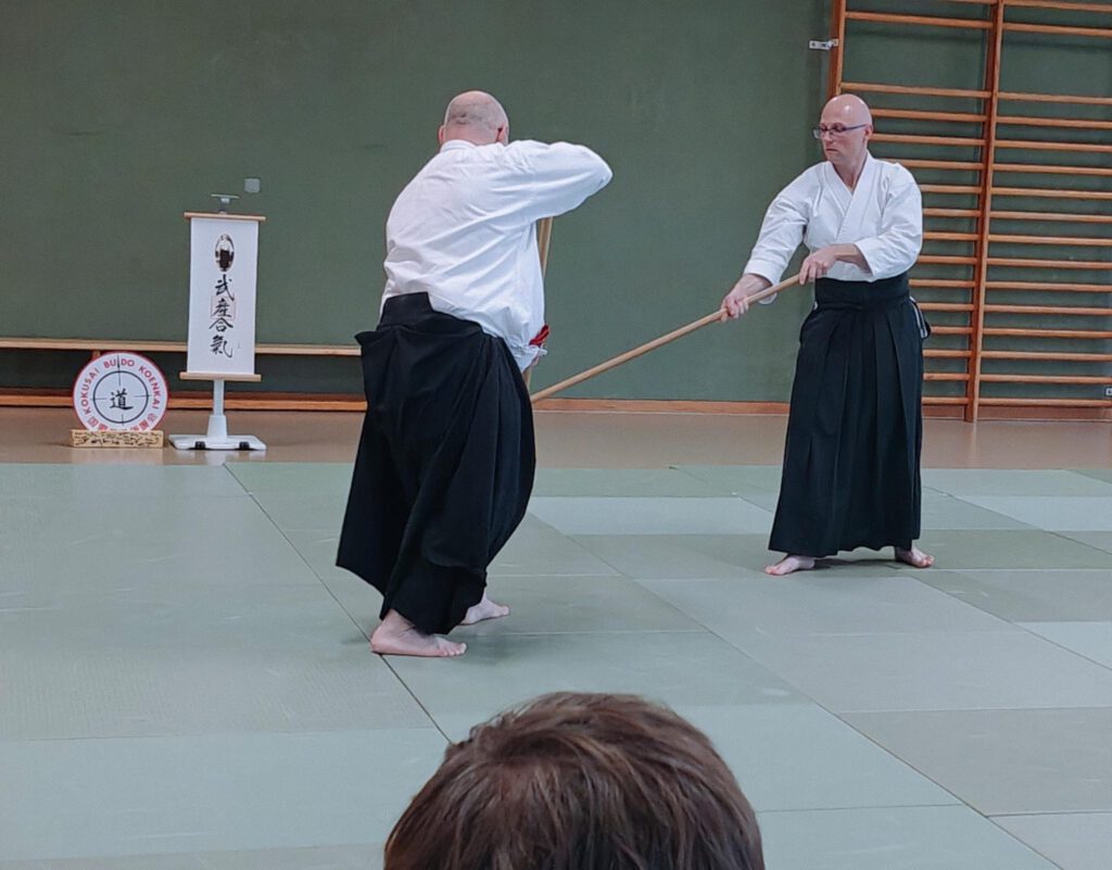 Begleitend standen Techniken und der präzise Umgang mit dem Bokken (einem Samurai-Schwert aus Holz) und dem Jo (einem 130 cm langen Kampfstab) auf dem Unterrichtsplan.